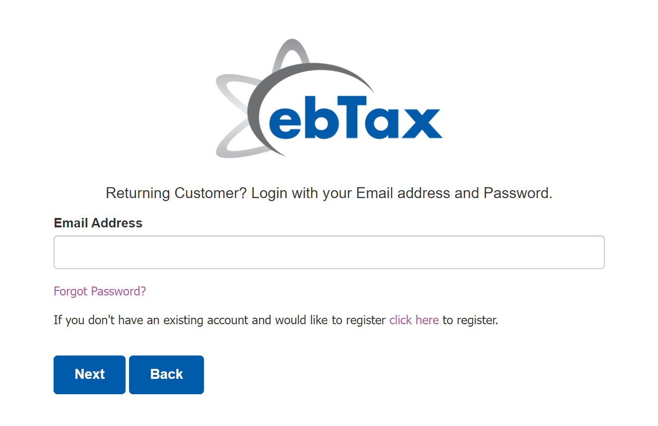 - If you fail to log in, you need to contact your IT department so that they can ensure your user has been configured correctly for ebTax login and is active.